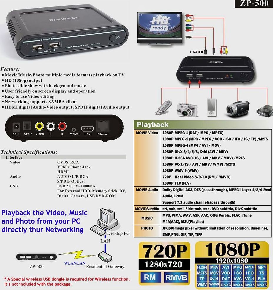 MEDIA PLAYER ZINWELL - Para reproduzir na sua TV de TUBO ou LCD, qualquer vídeo, foto ou música, do seu pen diver ou HD externo.